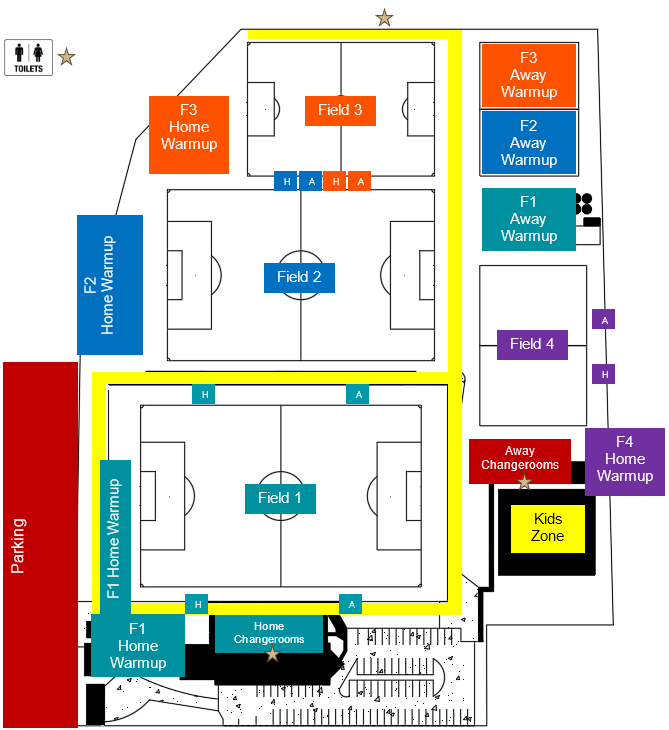 - Match Size Goals are available at all Warmup areas for goalkeepers. Do not warm up in the goal box areas.